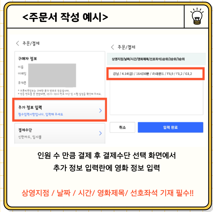 ④ 아래와 같이 주문서 작성 후 '입력완료' 누르면 끝!